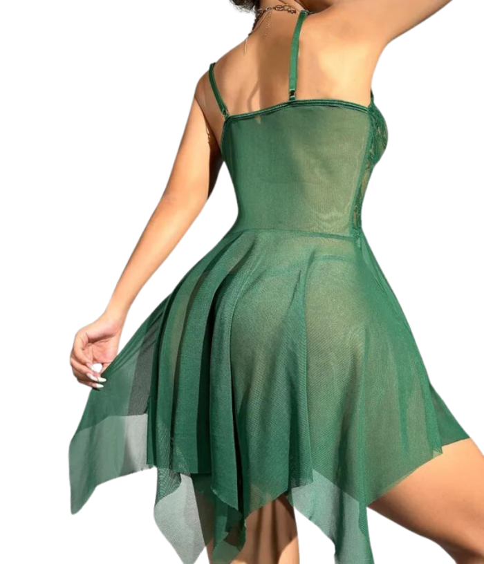 Baby doll en encaje y malla de dos piezas.